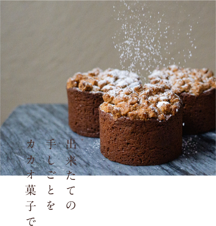 出来たてのカカオ菓子をご用意してみなさまのご来店をお待ちしております。